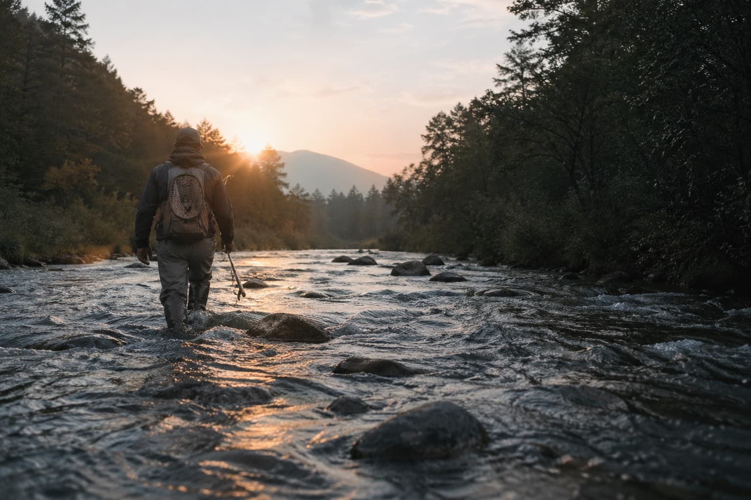 Trout, smallmouth, river-run stripers. Live USGS gauge readings. Personal hatch calendar. Flow-rate pattern engine.